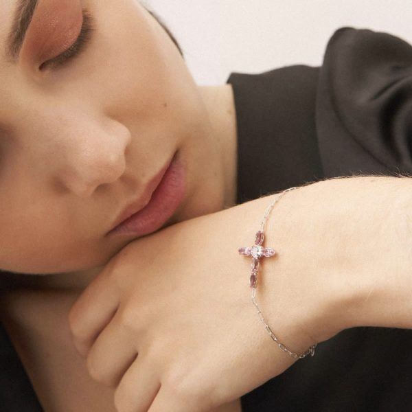 Βραχιόλι σταυρός από ασήμι 925 με Swarovski πέτρες