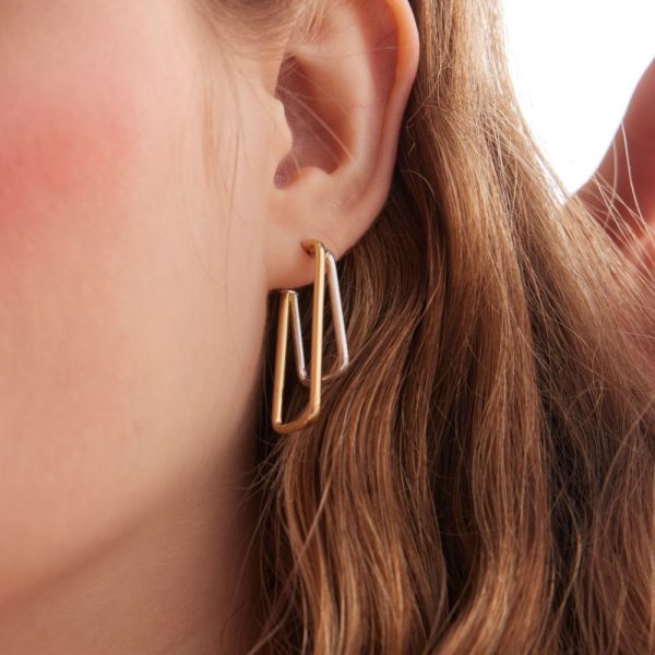 Σκουλαρίκια κρίκοι δίχρωμοι από ασήμι 925