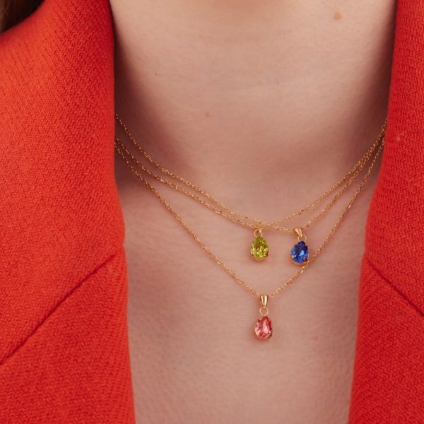 •Κολιέ από ασήμι 925 •Επιχρυσωμένο •Swarovski πέτρες σε Scarlet •Μήκος 40 εκ. + 5 εκ. extension