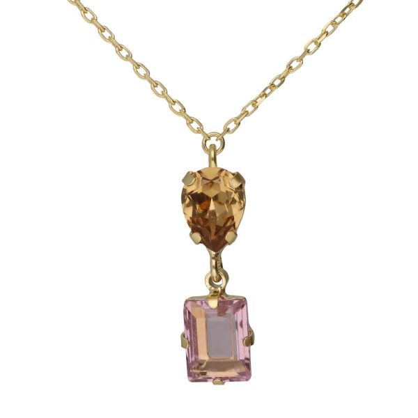 •Κολιέ από ασήμι 925 •Επιχρυσωμένο •Swarovski πέτρες σε Dark Jonquill •Μήκος 40 εκ. + 5 εκ. extension