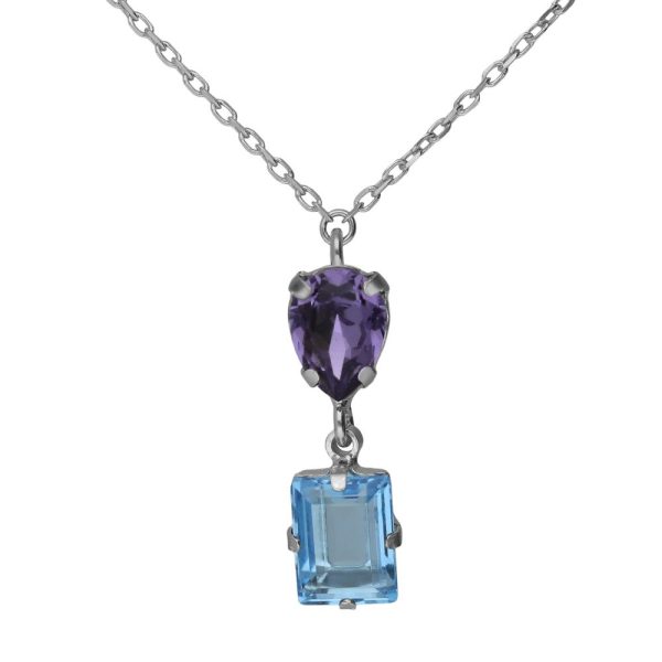 •Κολιέ από ασήμι 925 •Επιχρυσωμένο •Swarovski πέτρες σε Tanzanite •Μήκος 40 εκ. + 5 εκ. extension